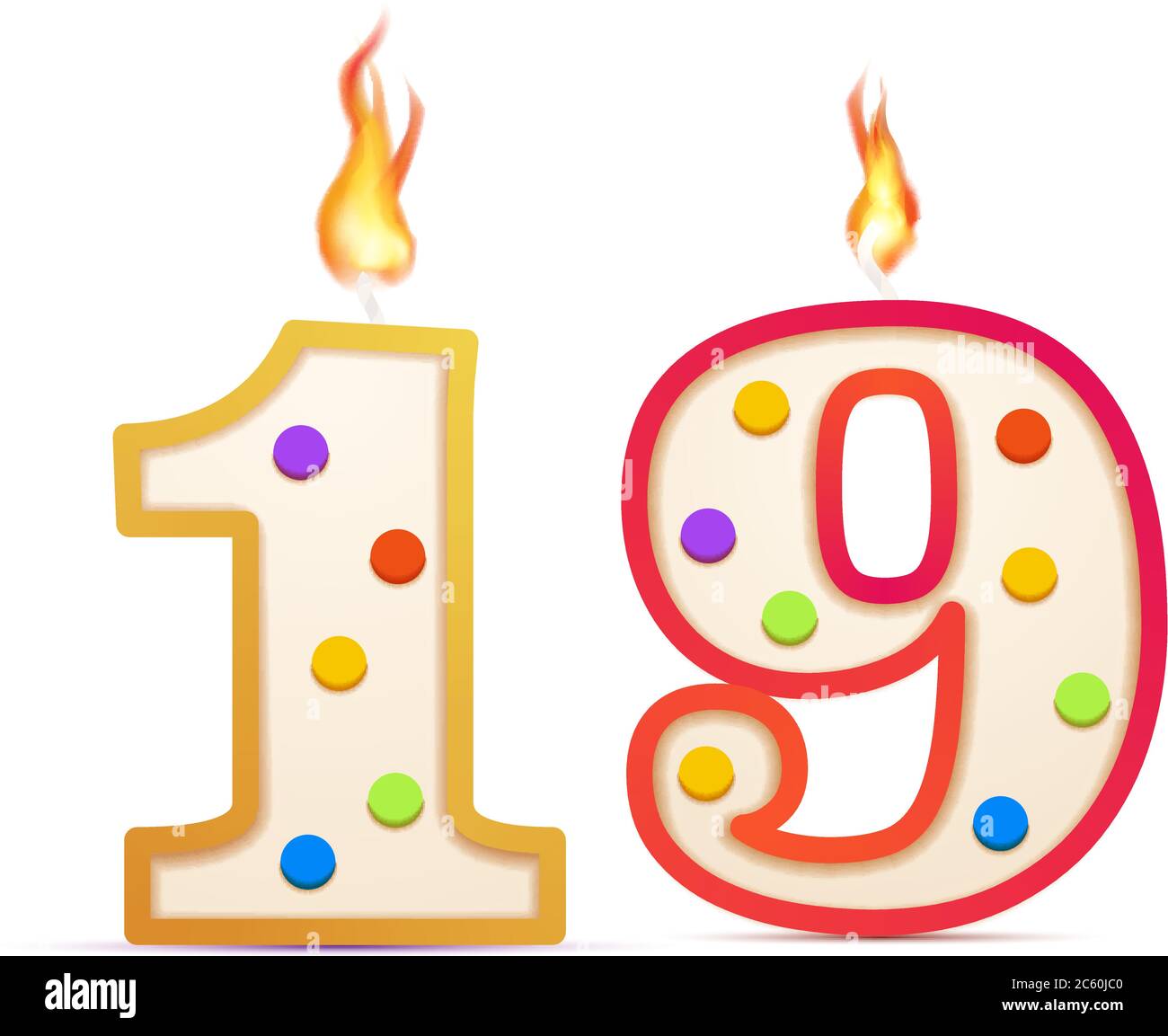 Nineteen Years Anniversary 19 Number Shaped Birthday Candle With Fire On White Stock Vector Image Art Alamy