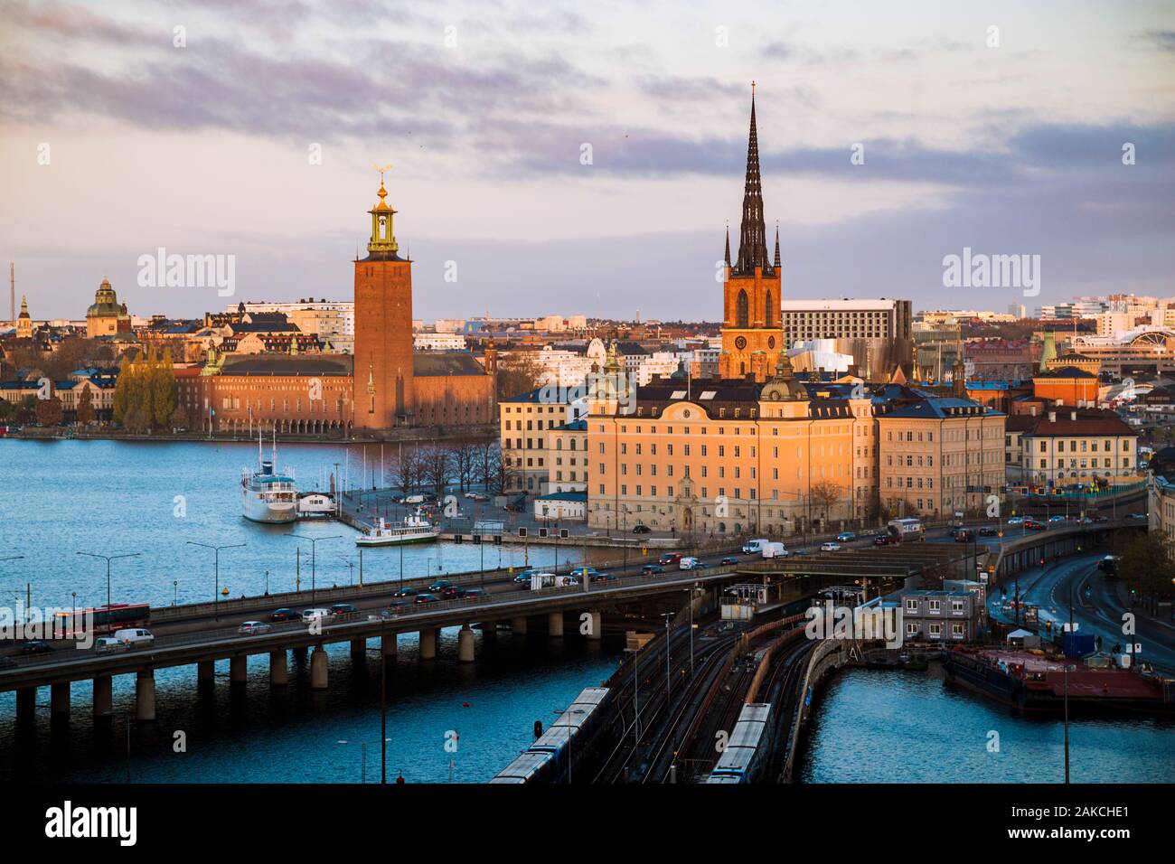 Blick Auf Stockholm Von Sodermalm Mit Riddarholmen Und Rathaus Lizenzfreies Stockfoto